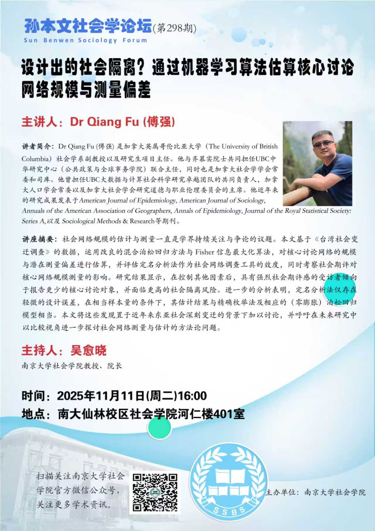 讲座 | 孙本文社会学论坛(第298期)