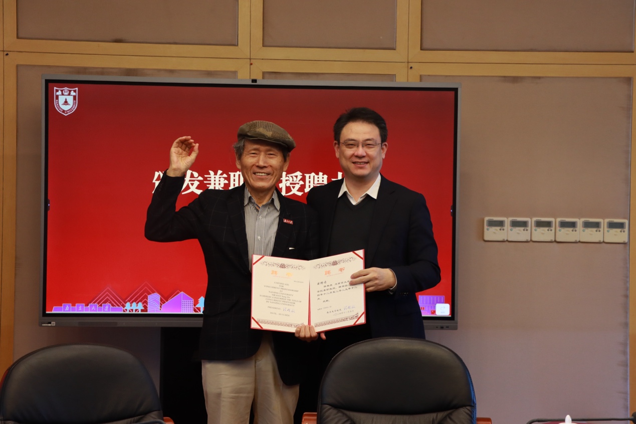 鉴于其卓越的学术成就,韩相震被聘为色情导航 兼职教授,索文斌为韩相震颁发聘书,并为其佩戴校徽。