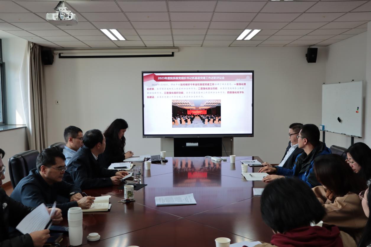 结合校党委谭铁牛书记在2023年度院系级党组织书记抓基层党建工作述职评议会上的指示意见,王建富表示,要不断加强党的领导,以各级党组织和党员干部政治上的“强”,引领学院高质量发展的“进”。他强调,进一步夯实基层党组织建设离不开各党支部书记的勠力同心,各党支部书记要共同积极探索学院党建工作与事业发展双促进的“一融双高”工作思路,全面贯彻落实“奋进行动”方案。