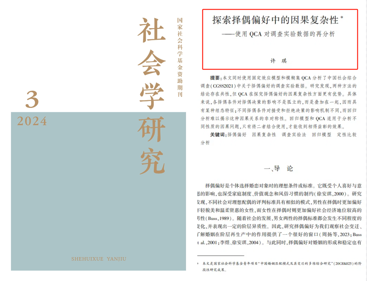 色情导航 许琪教授在《社会学研究》2024年第3期发表《探索择偶偏好中的因果复杂性——使用QCA对调查实验数据的再分析》一文。 本文同时使用固定效应模型和模糊集QCA分析了中国社会综合调查(CGSS2021)中关于择偶偏好的调查实验数据。研究发现,两种方法的结论存在共性,但QCA在探究择偶偏好的因果复杂性方面更有优势。具体来说,各择偶条件对择偶决策的影响不是孤立的,而是叠加在一起,因而具有某种组态特征;不同择偶条件对接受和拒绝决策的影响机制不同,而回归分析难以揭示这种因果关系的非对称性。回归模型和QCA适用于分析不同性质的因果问题,只有将二者结合使用,才能收到相得益彰的效果。 |