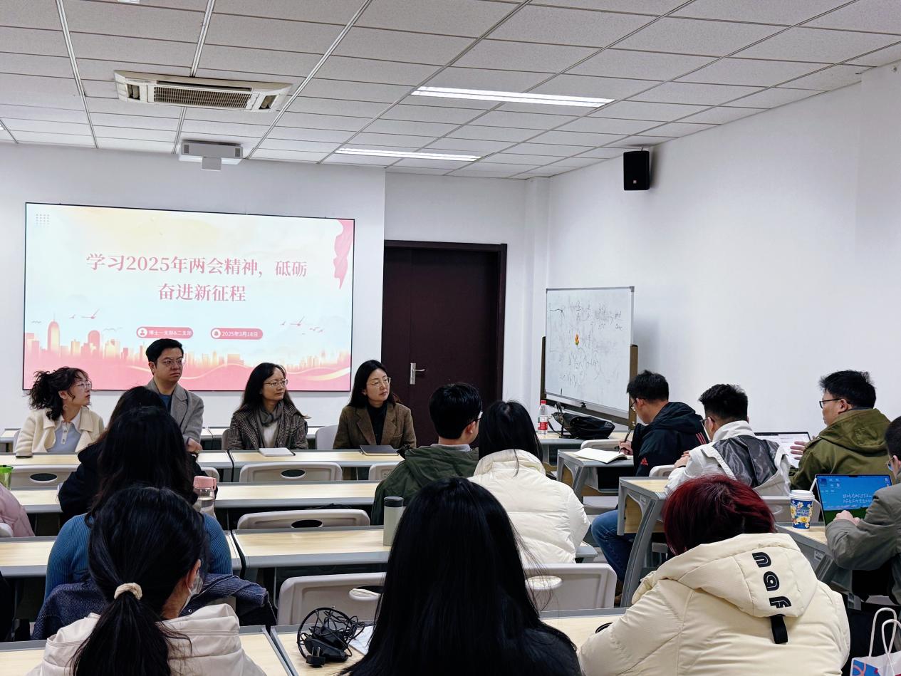 随后,博士生党员们共同学习传达习近平总书记重要讲话精神,政府工作报告的主要内容特别是关于教育的工作部署,聚焦强化教育对科技和人才的支撑作用,科技自主创新、人才良性培养、国家创新体系效能提升等议题展开讨论。