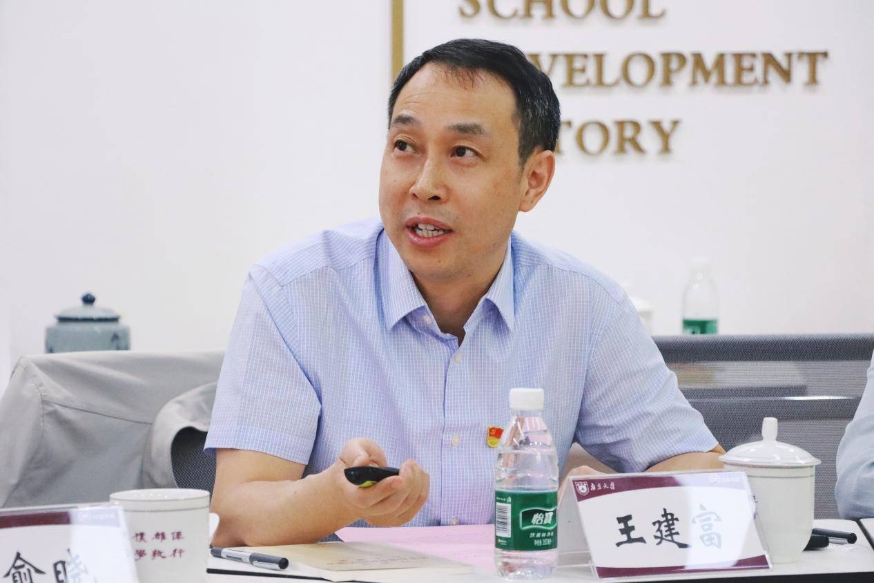 胡安宁、王建富分别介绍学院党委基本情况和相关工作。胡安宁以“双创引领 五位一体 谱立德树人新篇章”为题介绍院党委在党建引领学科建设、推动学院中心工作高质量发展等方面的积极探索与丰硕成果,分享了将党建工作与教学科研、人才培养深度融合的特色做法。王建富介绍了院党委在基层党组织建设、以“百舸项目”“红帆·学生党建工作站”为代表的党建品牌塑造、党建引领服务社会等方面的实践做法。双方在交流中互学互鉴,为党建工作创新拓宽思路。