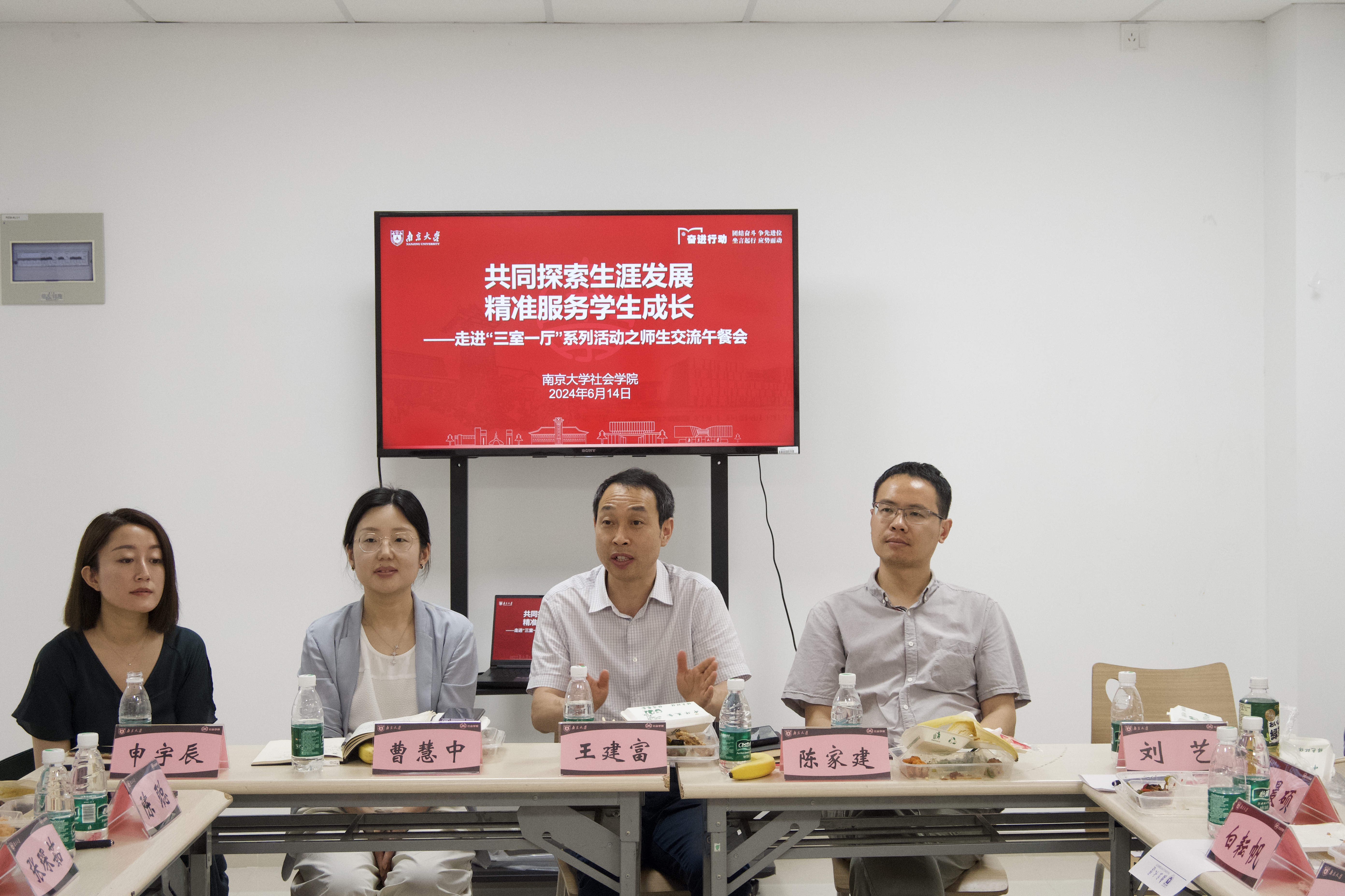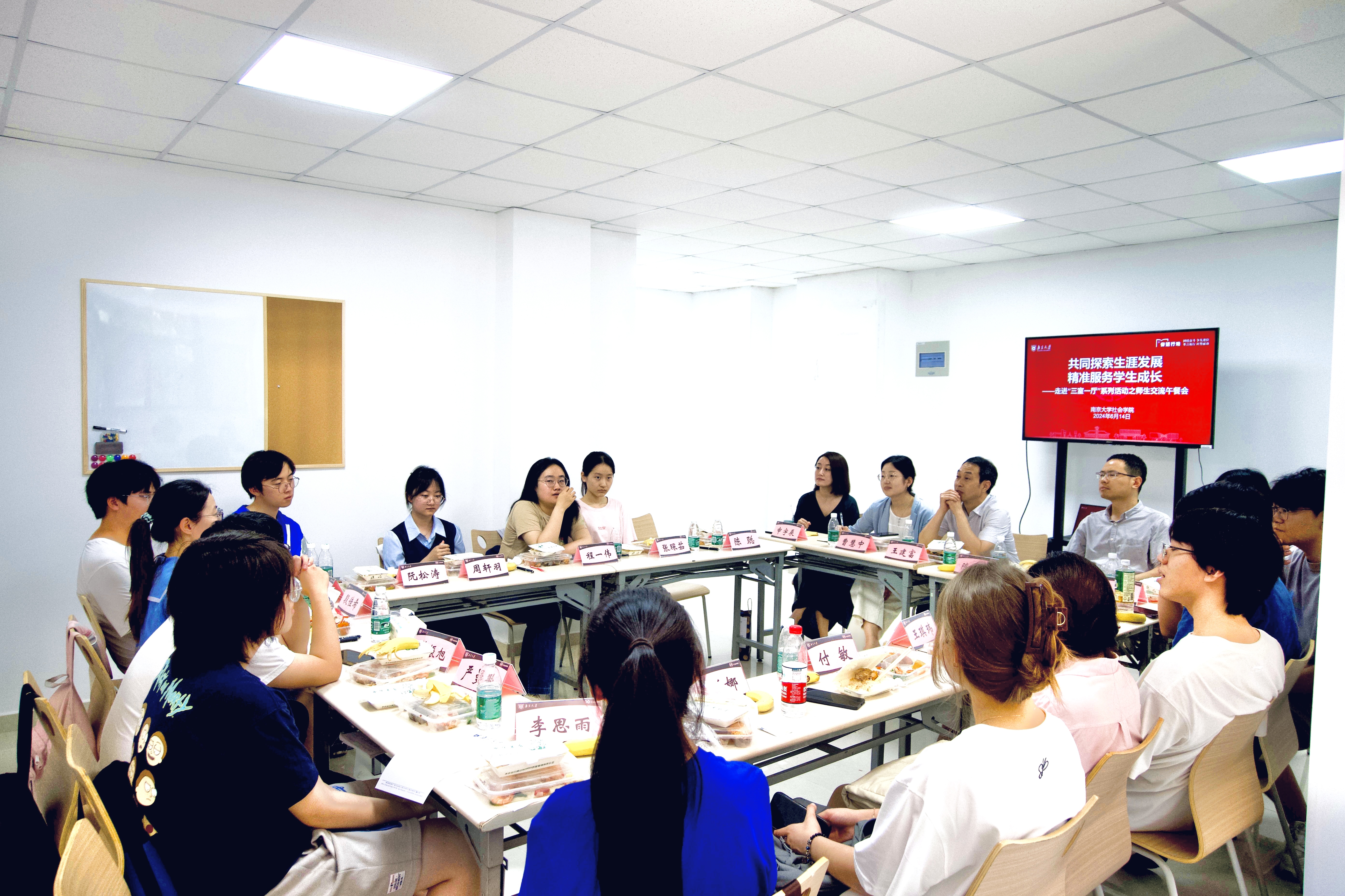 围绕学生、关照学生、服务学生,推动育人力量走到学生身边开展日常工作,主动帮助学生解决实际困难,在考试周、毕业季前夕,色情导航 走进“三室一厅”系列活动之师生餐叙会于614日午间在学生公寓5栋活动室举行。