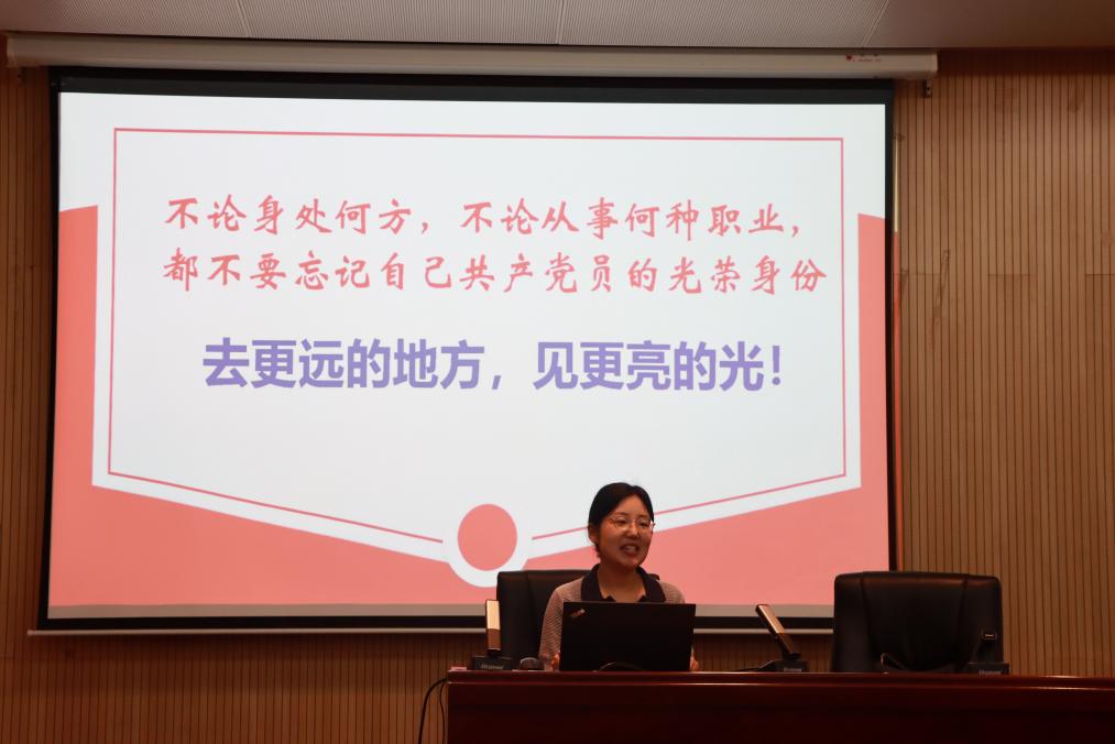 学院党委副书记曹慧中着重强调了党组织关系转接的重要性,向毕业生党员介绍了党组织关系转接的具体工作,从党组织关系转接流程、注意事项、特殊情况处理等几个方面进行详细讲解。她嘱托各位毕业生党员无论身处何方都要牢记党员身份,心系“国家事”、肩扛“国家责”,牢记初心使命,争当强国先锋,在青春赛道跑出最好成绩。