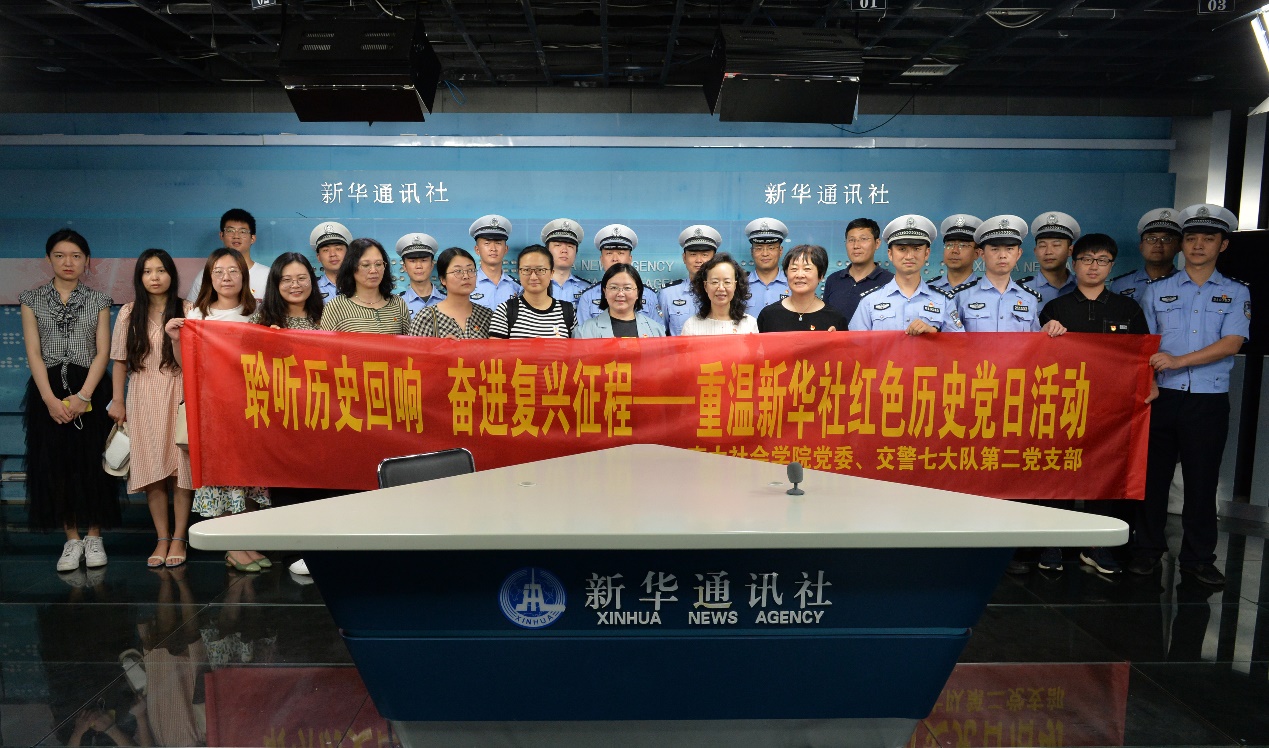 6月22日,为推进常态化党史教育,丰富党史学习内容,献礼“七一”党的生日,色情导航 教工党支部联合南京市公安局交警支队第七大队大二党支部、新华社江苏分社采编党支部,在新华社江苏分社共同开展“聆听历史回响 奋进复兴征程——重温新华社红色历史”主题党日活动。